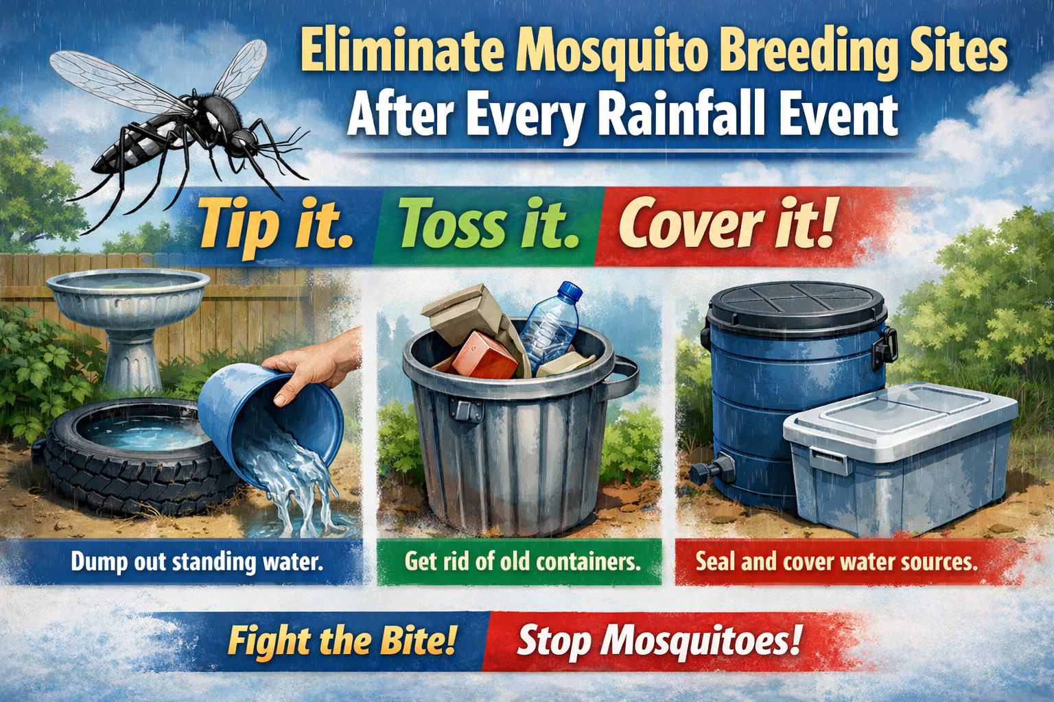 CPS: Eliminate Mosquito Breeding Sites after Every Rainfall Event. Tip it, toss it, cover it