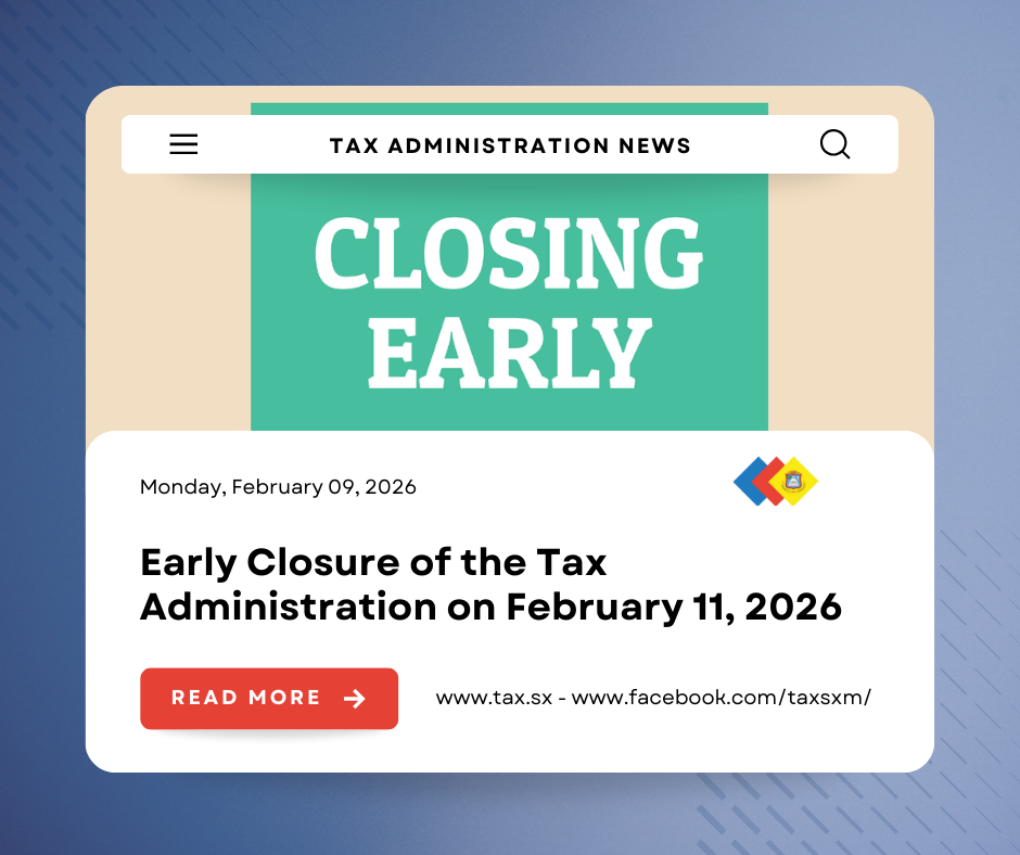 The Tax Administration hereby informs the public that its offices, including the receivers cashiers, will close at 11:00 a.m. on Wednesday, February 11, 2026, due to an internal staff meeting.