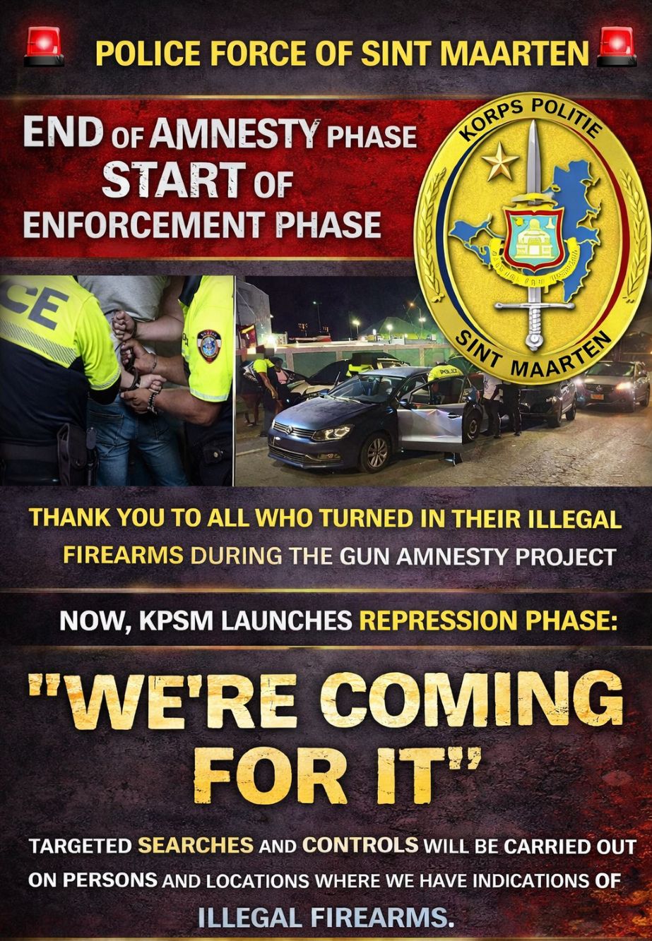 The Police Force of Sint Maarten (KPSM) hereby informs the general public that the first phase of the Inter-Insular Gun Amnesty Project officially concluded on Tuesday, April 14th, 2026.