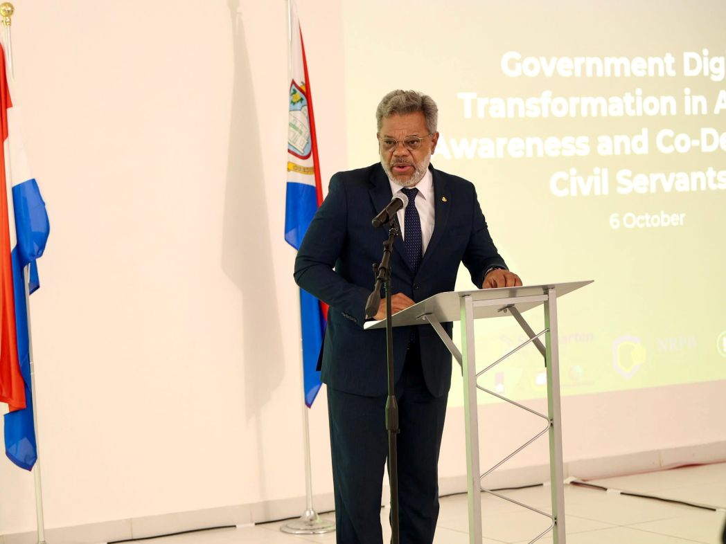 “Together we will build a seamless digital government, as we have a passion for public service. It is not a copy-and-paste system for St. Maarten, but one that must be studied and tailored to our authentic situation and culture. We must continue to strengthen the trust between government and the people by being transparent to our citizens. This project is commendable as it involves a lot of effort, coordination and communication by our Digital Leadership Team," declared the Honorable Prime Minister Dr. Luc F.E. Mercelina during his opening address.