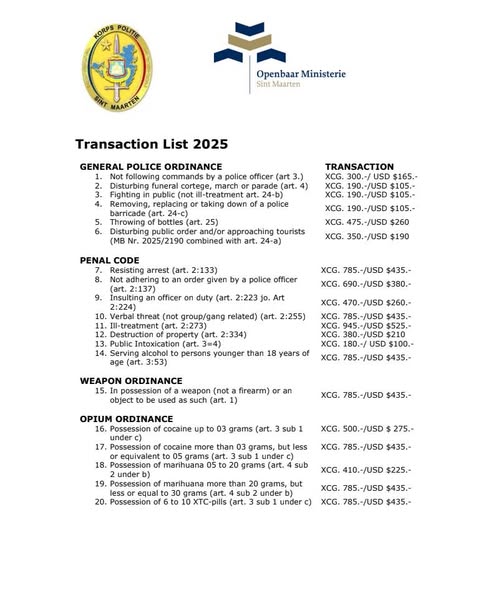 In support of these efforts, the Prosecutor’s Office has released an updated transaction list, which includes new fine amounts for various infractions, including traffic violations and public-order offenses. These updated fines will be applied immediately by officers during enforcement actions.