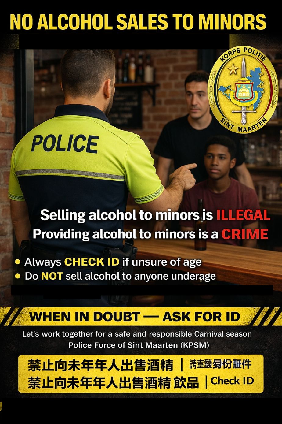 ​The Police Force of Sint Maarten (KPSM) is calling on all shop owners, restaurants, bars, and street vendors to exercise heightened responsibility during the upcoming Carnival season by strictly adhering to laws regarding the sale of alcohol.