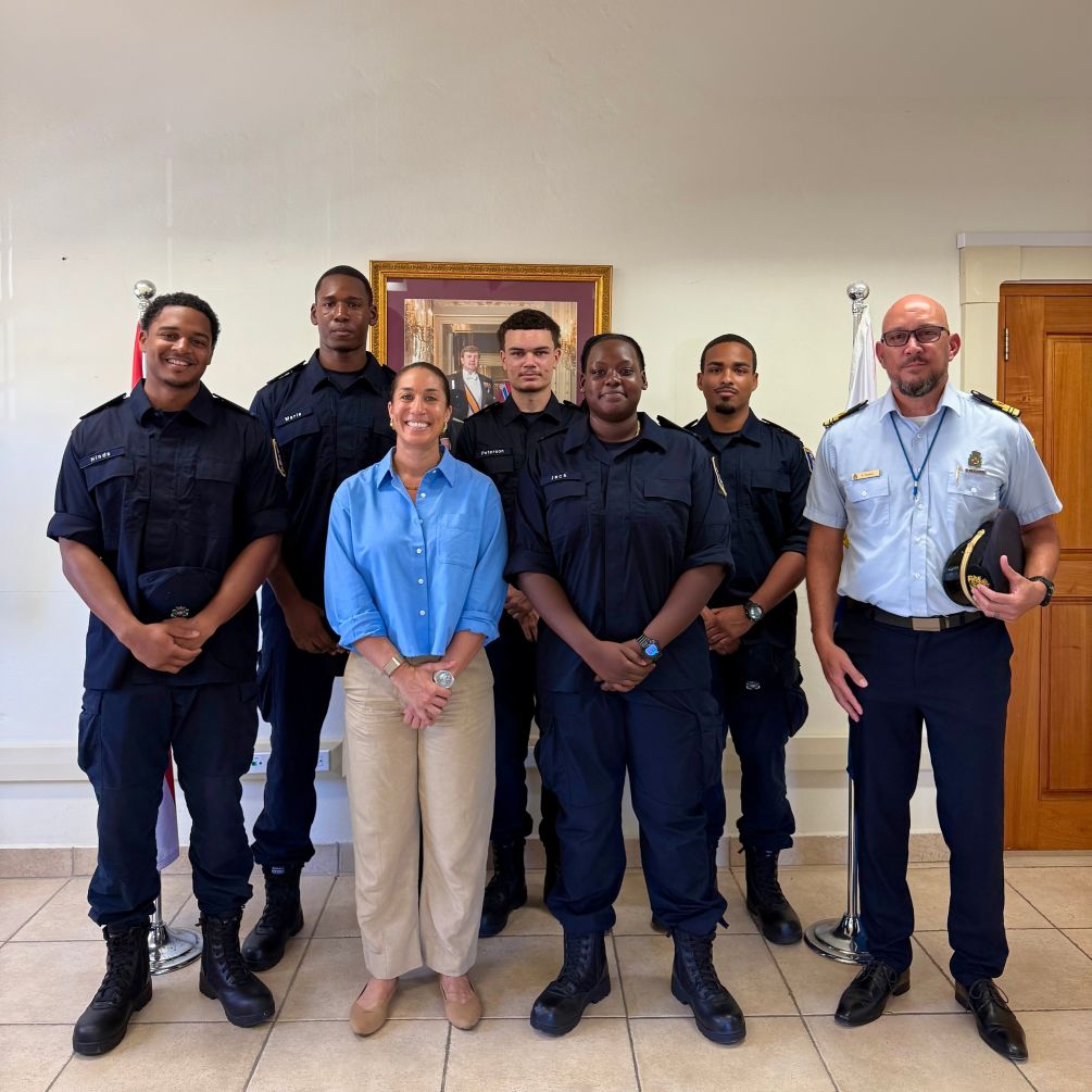 The Coast Guard proudly welcomed five new officers, Hinds, Maria, Jack, Arndell, and Peterson who are better equipped to serve at full capacity. Minister Tackling congratulated them, noting the pride of seeing local talent step into this vital line of defense, and expressed her excitement to join them on a patrol at sea in the near future.