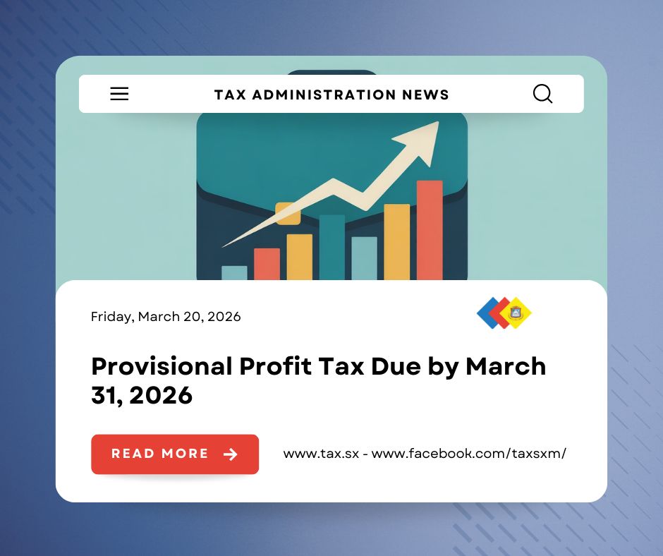 Philipsburg – The Inspectorate of Taxes is reminding businesses that the deadline for filing and paying the 2025 Provisional Profit Tax Form is Tuesday, March 31, 2026.