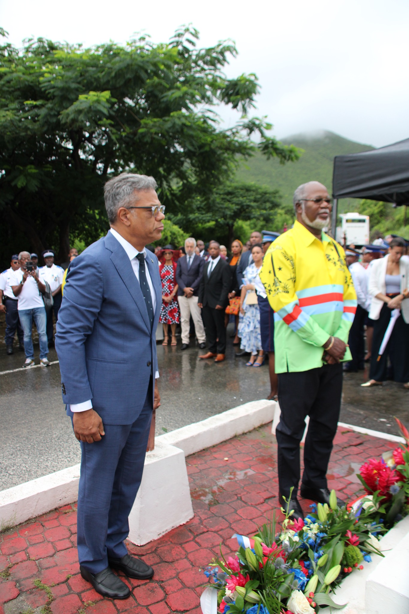 #1 – Prime Minister Dr. Luc Mercelina & President of the Collectivite Louis Mussington at the Bellevue Border Monument on St. Martin Day 2024